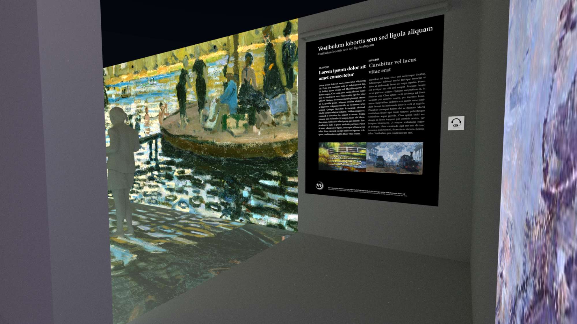 Impressive dynamic mappings accompanied by sound atmospheres share the impressive dimension of the works, immersing the visitor in Claude Monet's work and making him feel the sensory imprint of life in the 19th century. Here again, spatial duality reinforces the incredible expression of the painter's work.